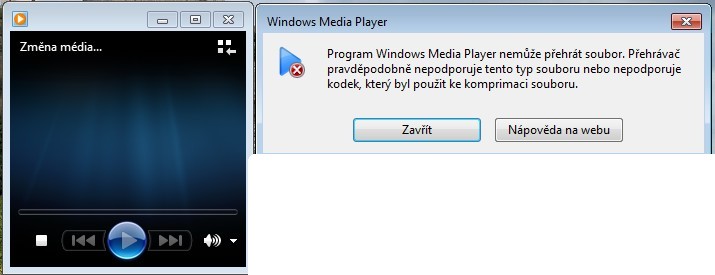 Windows Media Player je šit program, který neumí přehrát různé kodeky. Takže ho zásadně nepoužívám. Já používám a doporučuji VLC přehrávač. Existuje i portable verze (nemusí se instalovat), a přehraje v podstatě jakýkoliv formát a kodek.