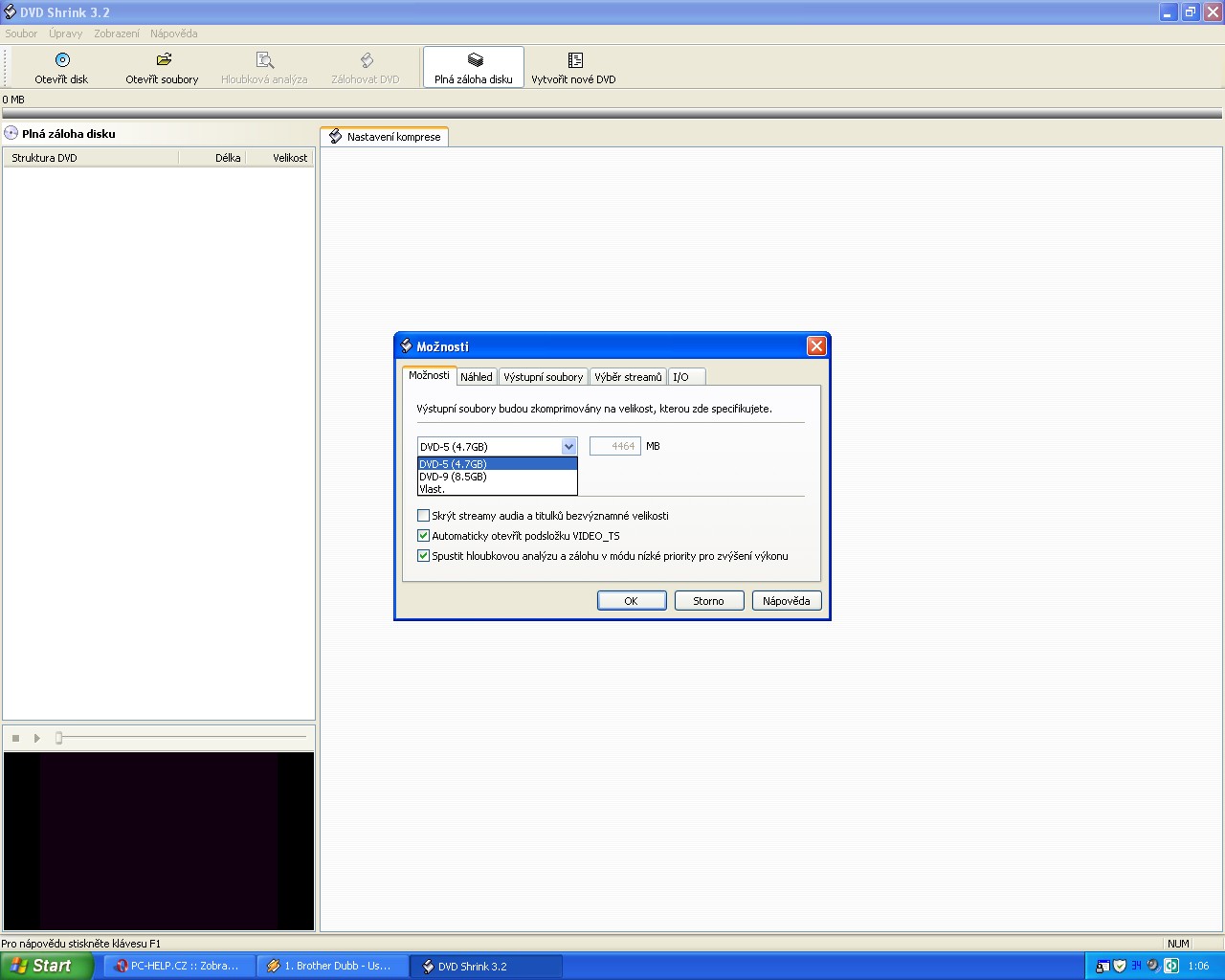 Když dole mám zaškrtnout jaké DVD tak tam je DVD9 (žádná jiná volba). Byl jsem zvyklí na clonedvd (na ten formát)... Takže mé otázky: