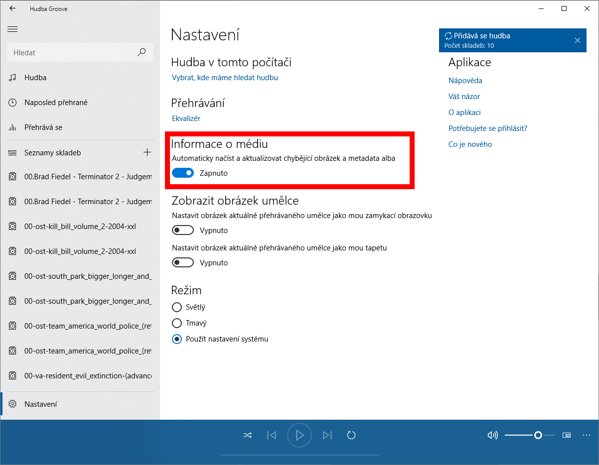 Groove přehrávač nemám ani nainstalovaný, takže to tím nebude.
