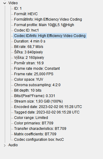 děkuji za reakci, video je format mp4 a žadným způsobem jsem jej neupravoval, je to čisté video rovnou z fotoaparaty panasonic 4 2 2 10bit, standardní barevné schéma. Ted jsem stahl a zkusil v AVidemuxu a tam to jede také v pohodě, problém je pouze v DAvinci Resolve a také v náhledových obrazcích ve win