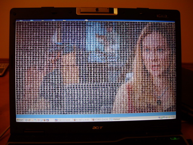 mám problém s přehráváním filmů na notebooku (win XP) - z nějakého důvodu ve všech přehrávačích (Mediaplayer, VLC či BSplayer) je obraz stejný, nekoukatelný - předevčírem všechno v pohodě. Zkoušel jsem několik balíků kodeků - beze změny. Přeinstaloval jsem ovladač grafiky (NVIDIA GeForce Go 6100) - beze změny. Neví si někdo rady? :crazy: Přikládám foto.