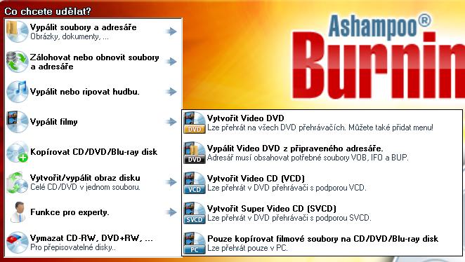 hm,ať koukám jak koukám tak tuhle funkci tam nemůžu najít,já tam mám na prvním místě rovnou funkci vytvořit dvd ze souborů ifo,vob nebo bup a přitom mám plnou verzi ashampoo 2010.