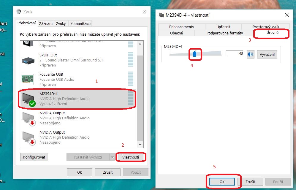 Když po snížení úrovně zkreslení zmizelo, znamená to, že někde docházelo k přebuzení - některá část zvukového řetězce byla krmená signálem s větší amplitudou, než je schopná zpracovat. Neznám blokové schéma cesty zvuku od jeho zdroje přes grafickou kartu do HDMI výstupu, takže si netroufám hádat, ve které části k tomu dochází, určitě to ale bude někde za regulátorem úrovně na záložce Úrovně.