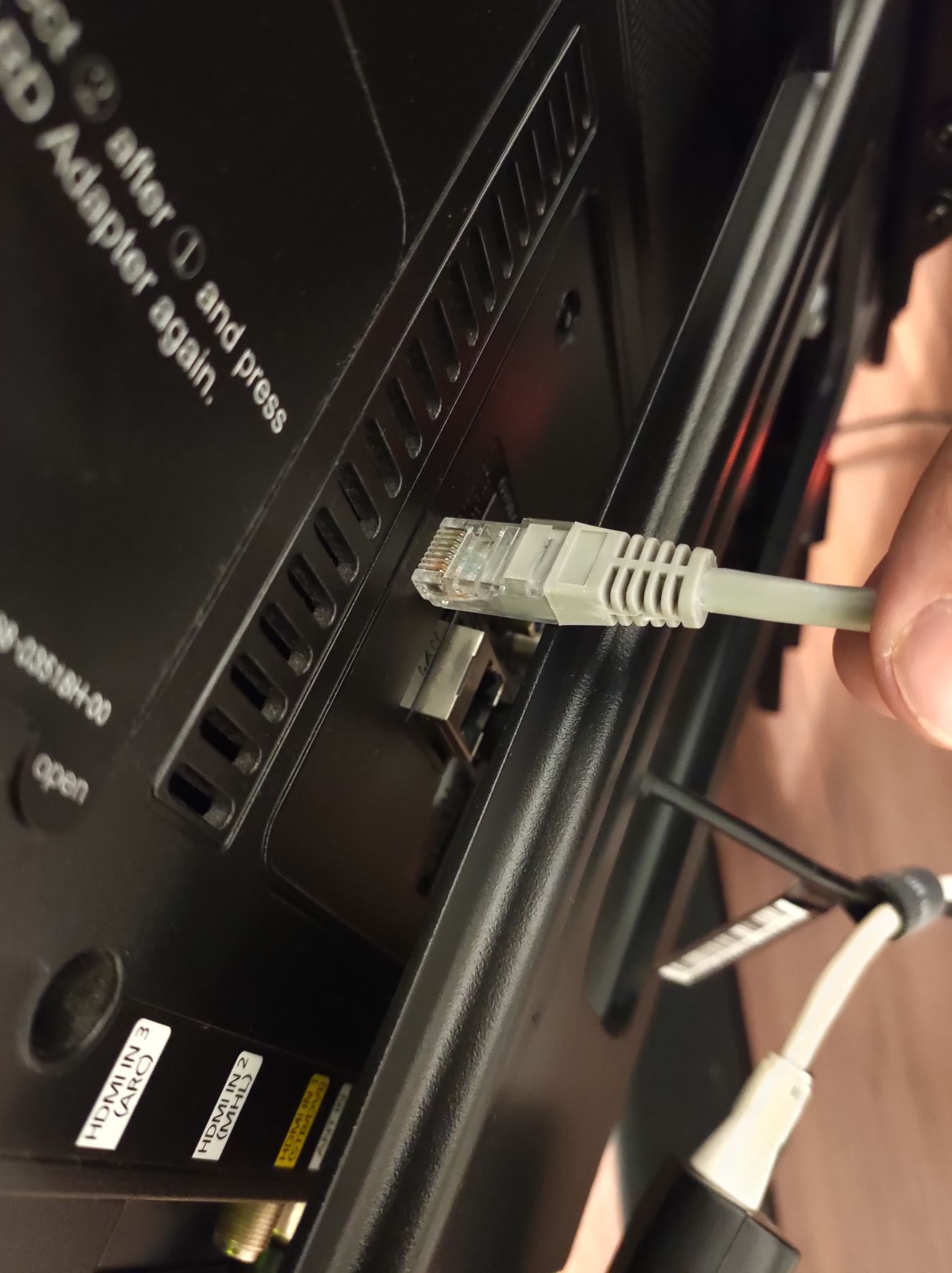 Zdravím, nemáte někdo nápad jak dostat RJ45 konektor do TV ? Koupil jsem VESA držák https://www.czc.cz/stell-sho-3610-slim- ... 91/produkt a nějak jsem si neuvědomil že by mi zasahoval do konektoru.