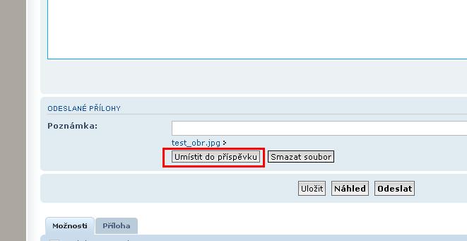 Ohledně vkládání obrázků do příspěvku došlo k malé, leč velice příjemné, změně. Nyní je možné obrázek přiložit k příspěvku pomocí přílohy (viz. záložka "Příloha") pod oknem příspěvku. Následně po přiložení obrázku stačí kliknout na tlačítko "Umístit do příspěvku" a je hotovoBlue Spirit píše:A Galerie nebude? Nebo špatně vidím?