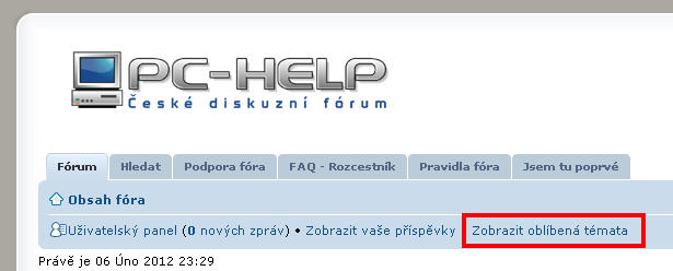 Já tam mám teda "Zobrazit oblíbená témata" ale měl bych prosbu... Souhlasím s tím odkazem. Jistě to teď začne používat mnohem víc lidí ale nešlo by to prohodit s "Zobrazit vaše příspěvky". Ten odkaz používám ke kontrole svých témat a pokaždé, když sem teď přijdu kliknu na ty oblíbený.... :/