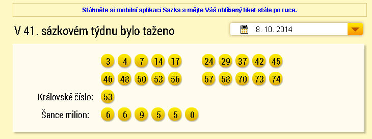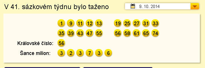 tak kdyz byli tazeny cisla 54 a 53 tak uz sem si rikal ze neni zadna sance aby jedno z mejch cisel - 55 a 56 vubec padli a ona 56.. je to nejaky bugly ... kazdopadne diky moc :)