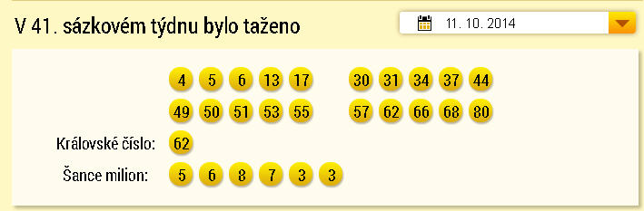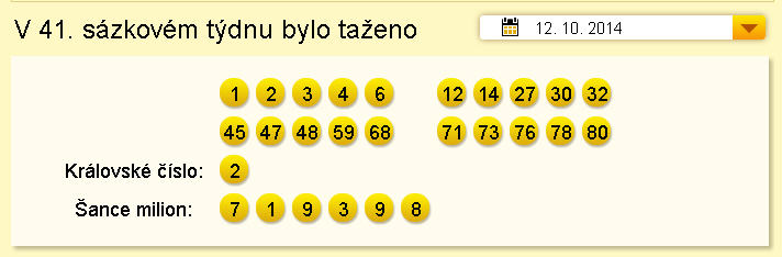12.10.2014 bylo coby "Královské číslo" vylosováno číslo 2.