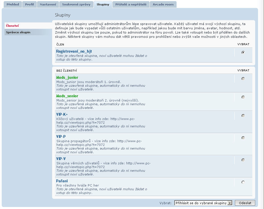 Snad jen poslední doplnění k tomuto, o přiřazení do skupiny není třeba žádat přes SZ (jak jsem psal o několik příspěvků výše). Pokud si budete přát zařadit do skupiny, které se nebude zobrazovat HJT v TOP 30, postupujte prosím takto: