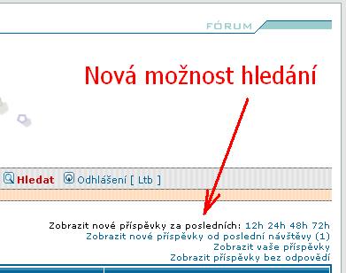 Pomocí tohoto módu teď může každý zobrazit seznam nejnovějších příspěvků za posledních: 12, 24, 48 nebo 72 hodin :bigups: Počet hodin je nastavitelný, pokud by byla zapotřebí ještě jiná hodnota, nebyl by to problém. Dej vědět, jestli ti to takto vyhovuje - věřím že ano ;-) Hledání dle.....lze nalézt v pravém horním rohu (viz. screen níže)