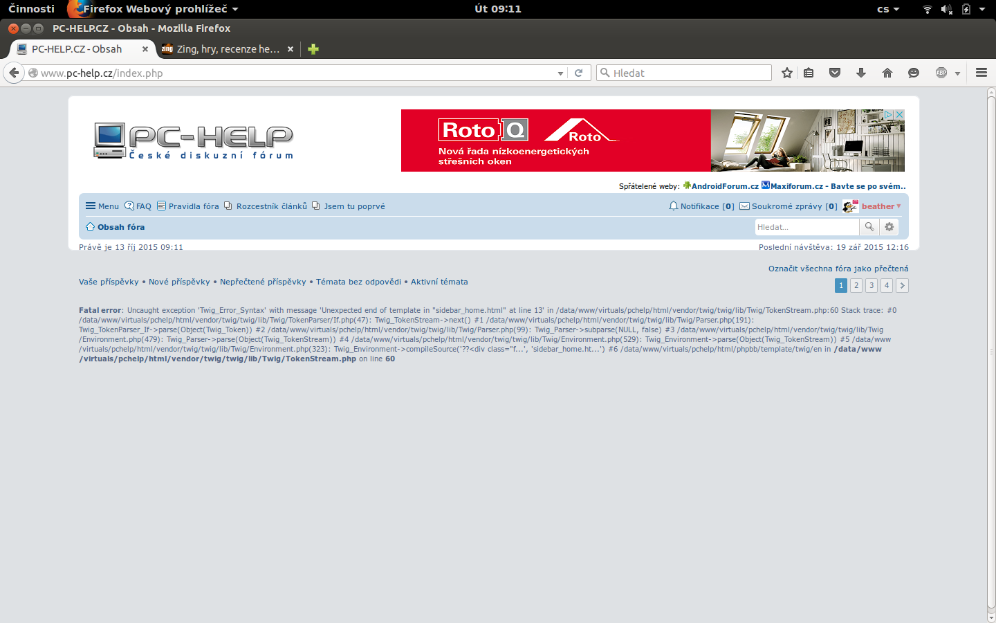 dneska mi to vyhodilo zajímavý error v jednom souboru vašeho serveru... :-) jen na to upozorňuji, aby jsi se na to mohl podívat a případně eliminovat možné důsledky ;)