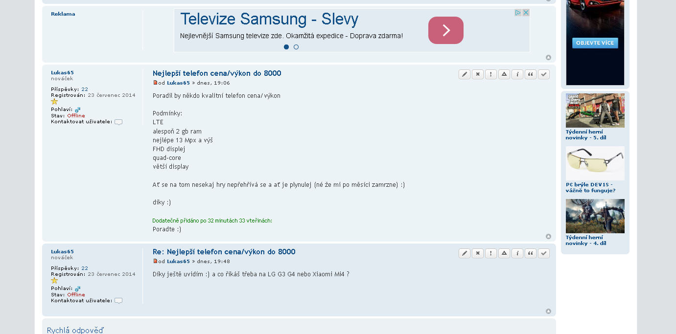 zde viewtopic.php?p=1287969#p1287969 jsou špatně seřazeny příspěvky, vypadá to, jakoby to téma založil Spartak... Upozornil mne na to on sám, takže se nebude jednat nejspíš o chybu mé Opery...
