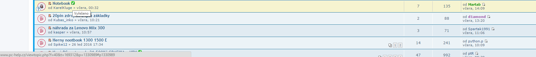 Clorky píše:Při kliknutí na fajfku u nějakého tématu v jakékoli sekci je uživatel automaticky odkázán na daný post.