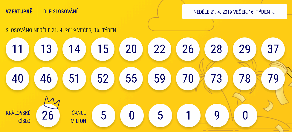 • v sobotu 20.4.2019 bude všem přihlášeným náhodně přiřazeno výherní číslo v rozsahu 1-80