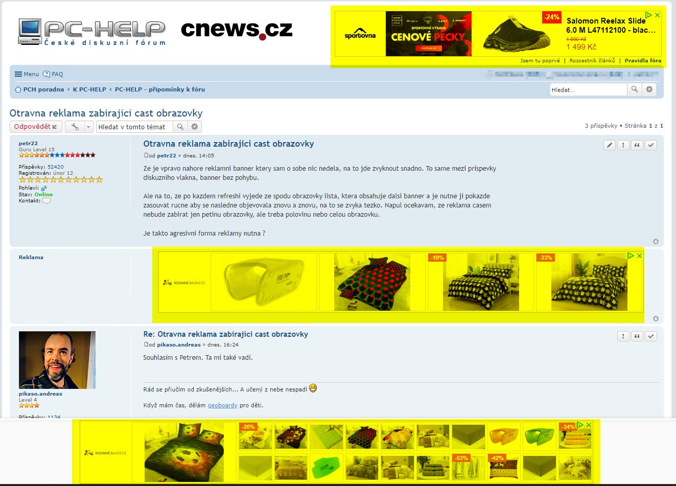 Ze je vpravo nahore reklamni banner ktery sam o sobe nic nedela, na to jde zvyknout snadno. To same mezi prispevky