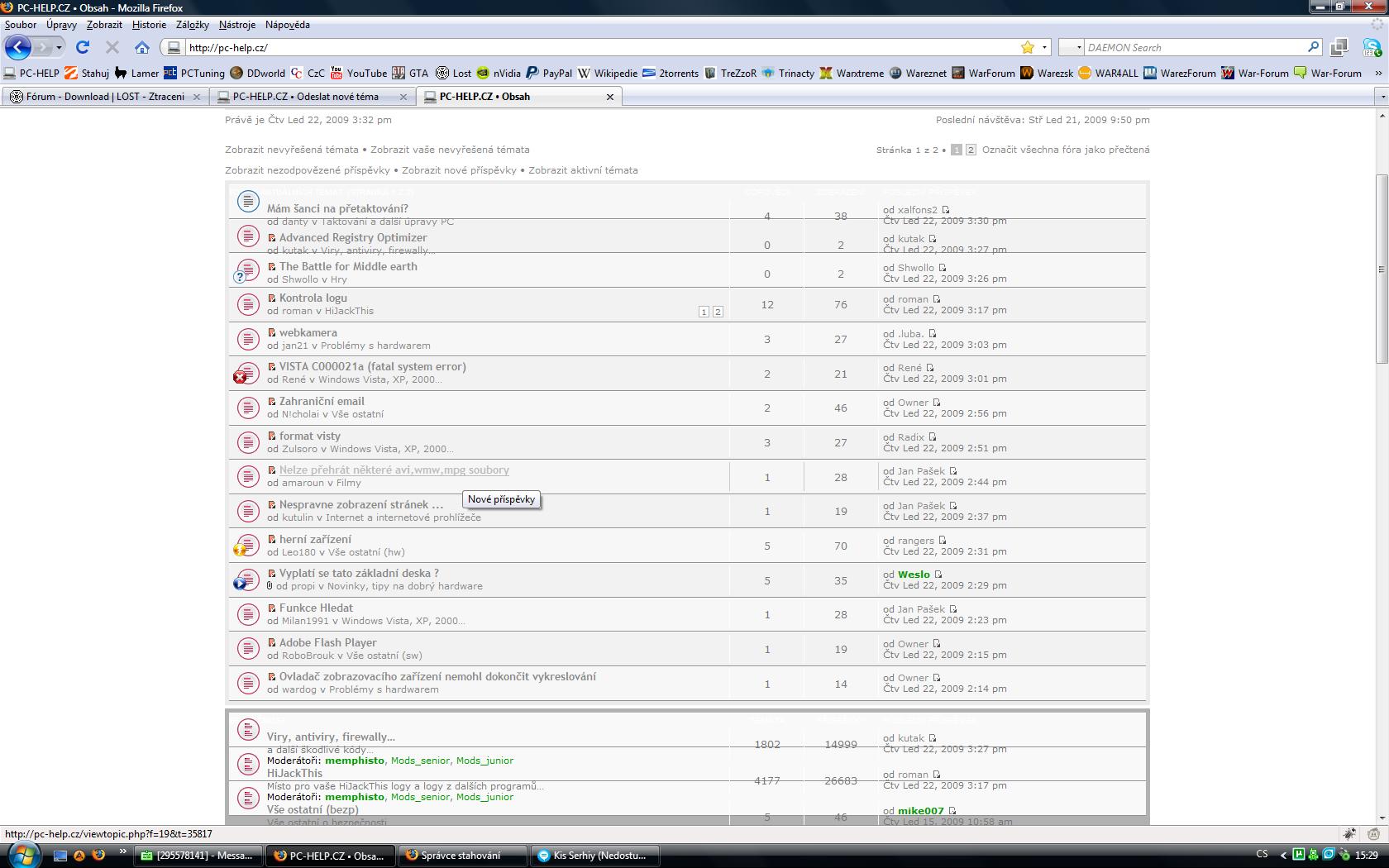 k těm odkazům: to není vše něco je ještě v záložkách a etšě to pokračuje do boku to je jedno, hlavně že mě jede forum normálně, jinak je pravda že já cache a sušenky nemažu a dávám za vyřešený