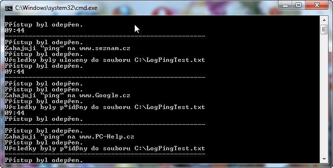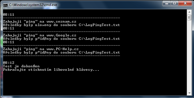 echo Výsledky byly přidány do souboru C:\LogPingTest.txt