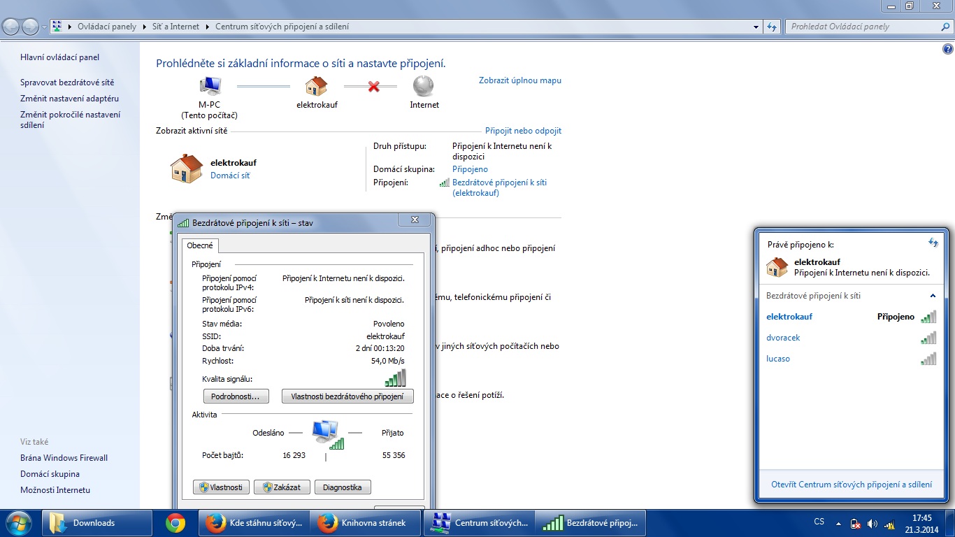 Když se připojím na net přes wifi v práci (normálně vyberu síť, zadám heslo, přípojím se k síti) tak mi net stejně nefunguje - viz print screen - mohl by mi někdo poradit kde je problém? Se stejným notebookem se bězně připojuji na volné sítě i na mojí wifi doma, takže mojím hardwarem to předpokládám není...