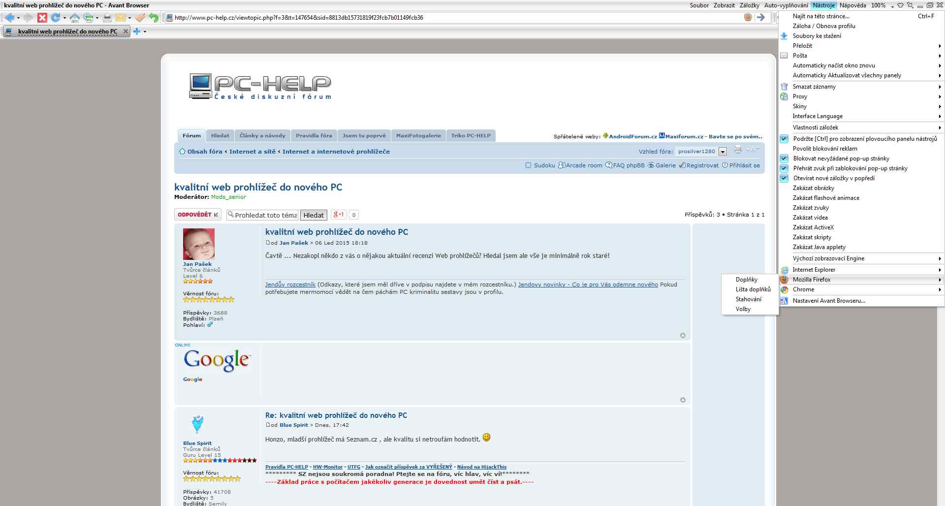 Čavtě ... Nezakopl někdo z vás o nějakou aktuální recenzi Web prohlížečů? Hledal jsem ale vše je minimálně rok staré!