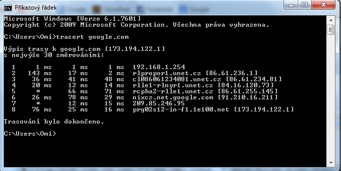 Tracert na google posílám v příloze . Internet máme od unetu , tehdy to byla ještě COMA s.r.o , větší specifikace si bouhžell nepamatuji. Router mám Asus RT-N12.