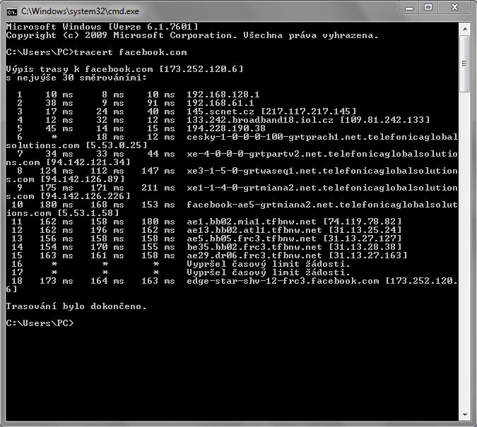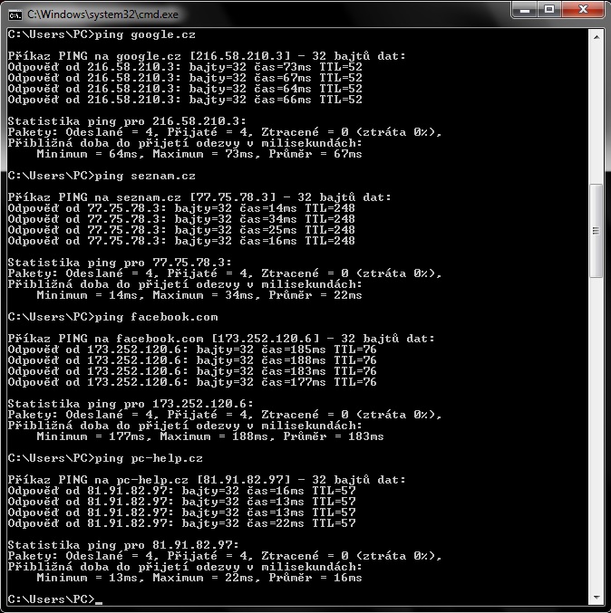 Přikládám Ping na různé stránky.