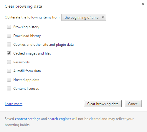 Otevři google chrome a dej CTRL+H následně "Clear browsing data" (pokud máš anglickou verzi) a zaklikni "Cached images and files" a pak "Clear browsing data" - vymažeš tím veškeré uložené soubory v cache.