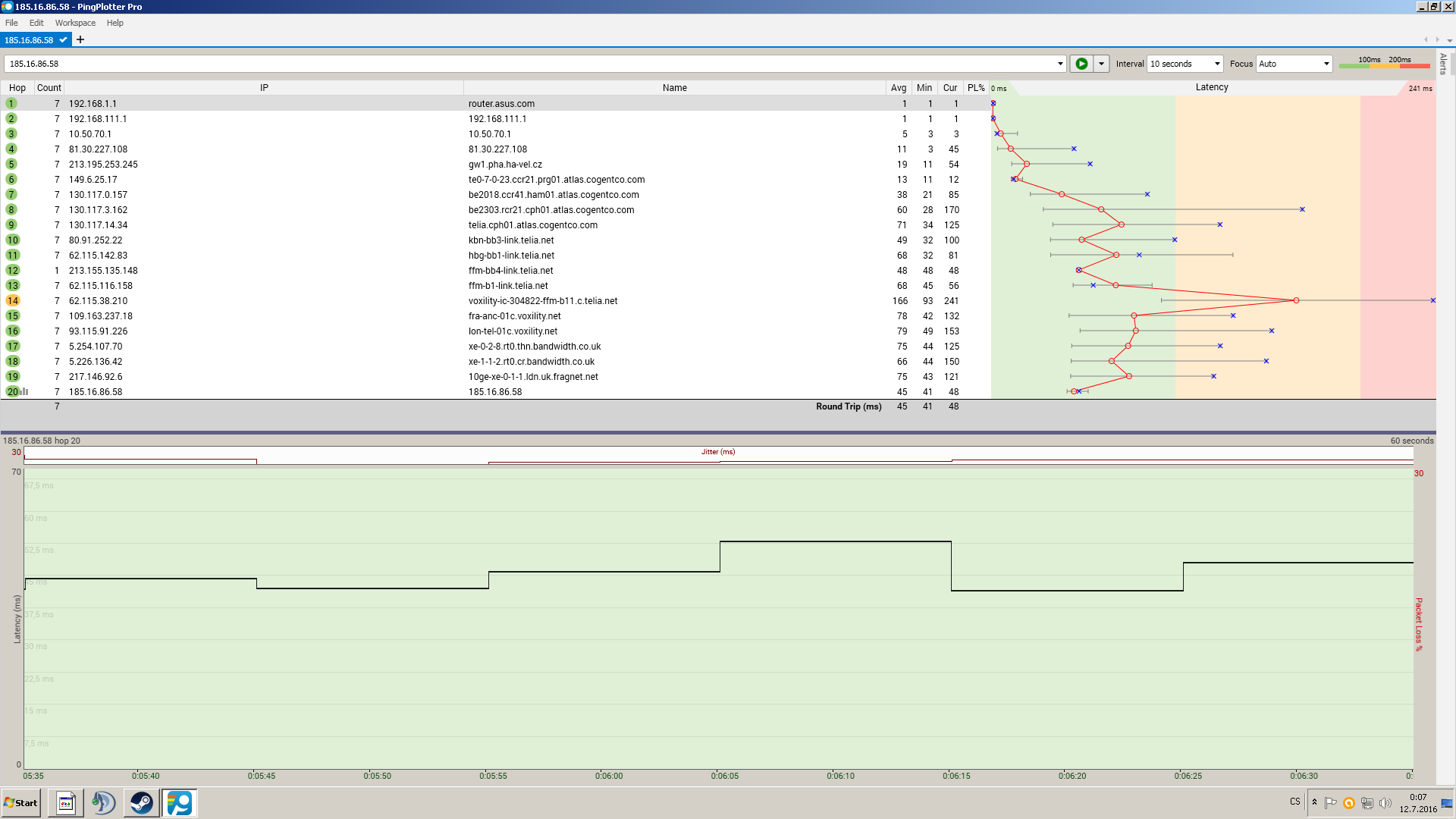 V mém podpisu najdeš návody na diagnostiku sítě. Pečlivě prostuduj. Vlož sem screen z programu pingplotter.