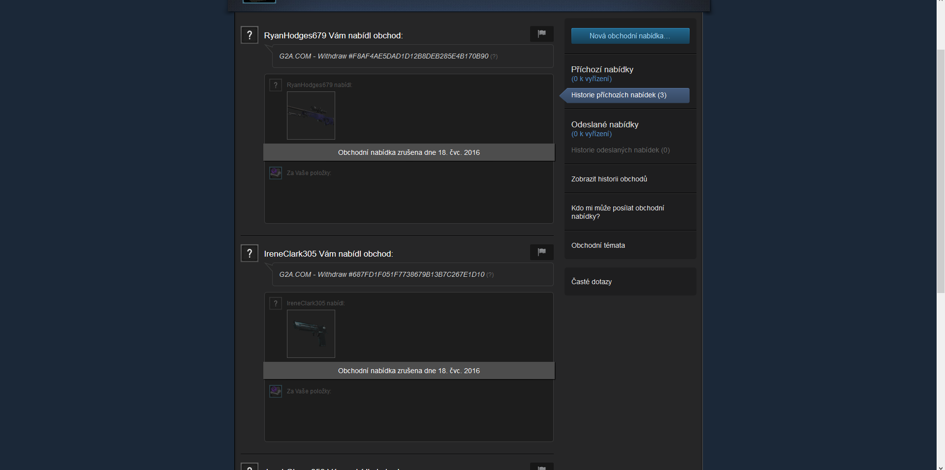 Ahoj chtěl bych s zeptat zda jste neměli stejný problém. Přes G2A mi poslali skiny já je nechtěně zrušil ale jsou zaplacené, nevíte jak to vrátit zpět? Více příloha