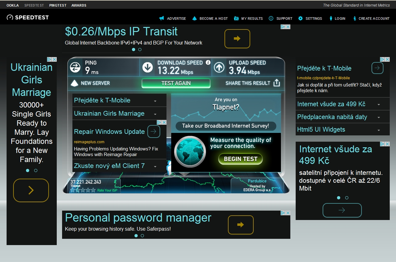 Rychlost jsem změřil, ale nevím jak udělat odkaz s výsledkem. Udělal jsem teda aspoň PrintScreen. To jediný dokážu.
