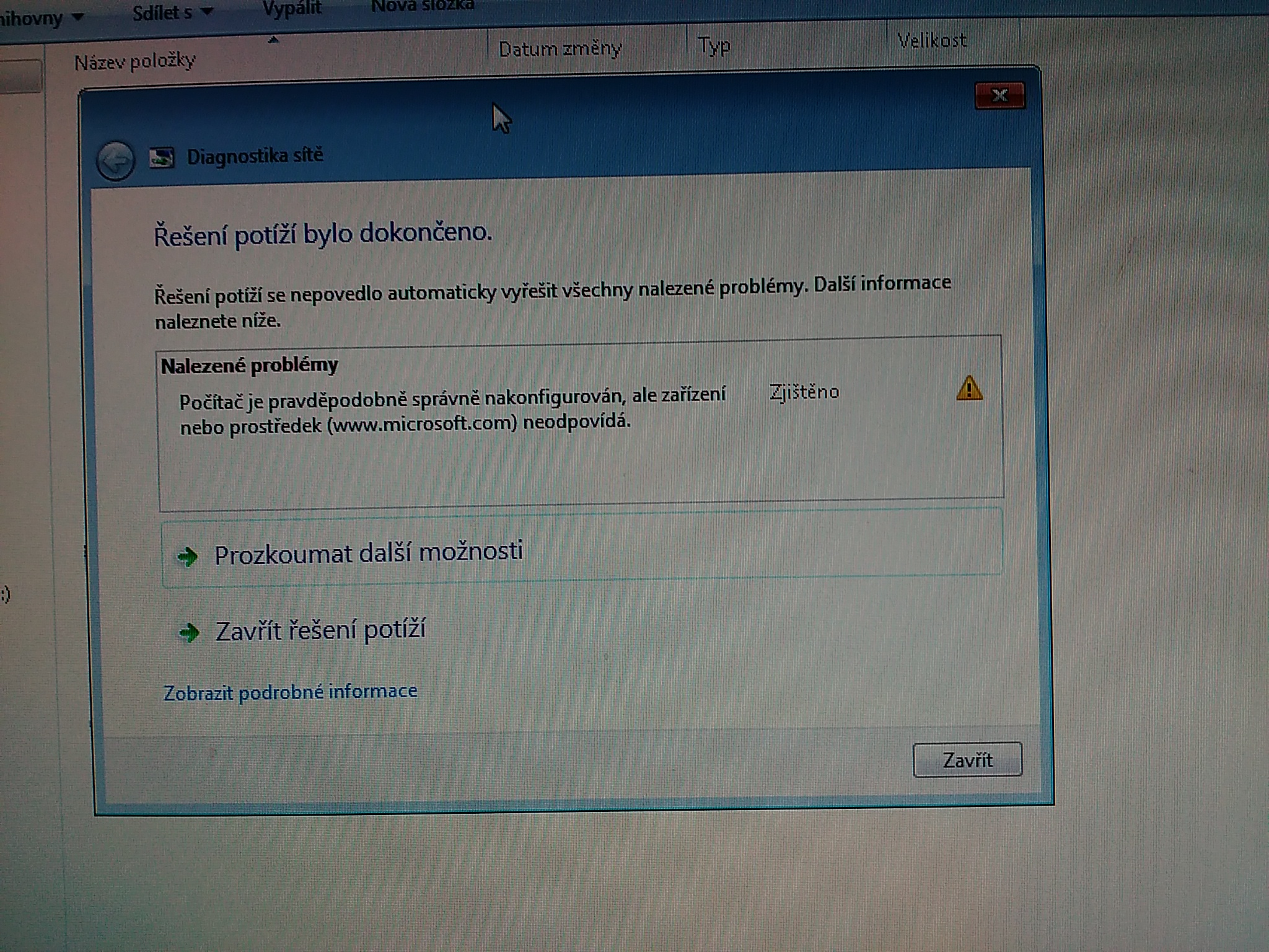 Dobrý den potřeboval bych pomoc určitě se najde někdo kdo mi pomůže k věci přestal mi fungovat internet z ničeho nic prostě jen vykřičník a když dám aby odstraníl potíže napíše to tohle. Viz příloha díky všem za pomoc. omlouvám se za nekvalitní obrazek.