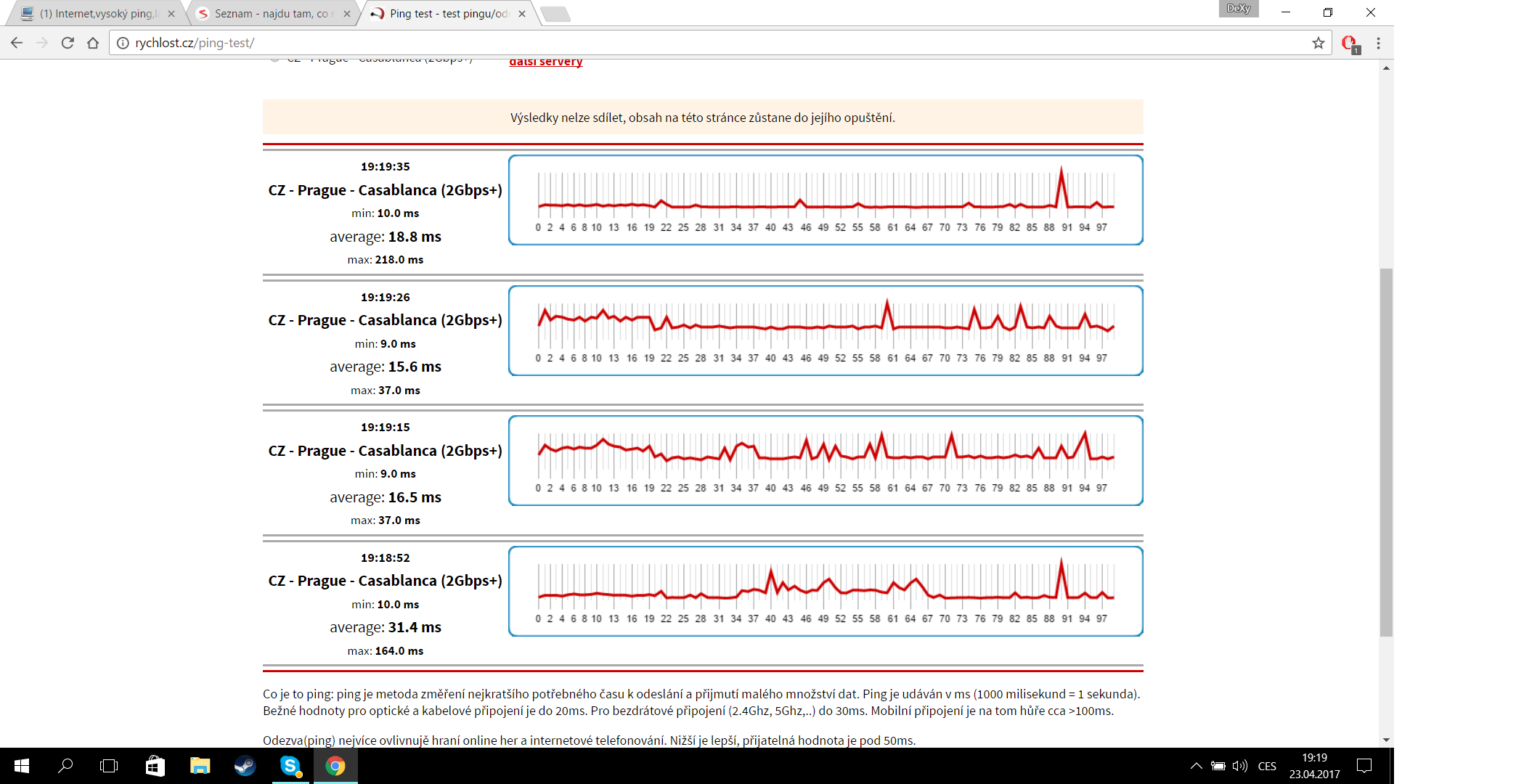 Řekněme že půl minuty mám ping 17 a potom se mi to lagne a mám ping 150+ a takhle to furt skáče.