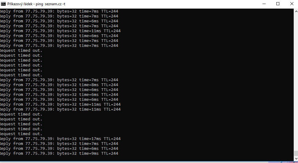 Zdravím, již cca měsíc mám problém s internetem a to takový, že je schopný každých 5 minut dennodenně na pár vteřin spadnout. Když pinguji například seznam.cz tak to 5 minut piguje normálně a pak z ničeho nic a bez zvýšeného pingu či packetů třeba 4x za sebou "Request timed out" pak to zase 5 minut běží a po 5ti minutách znovu drop. Provider mi tu měnil komplet anténu i router a nic to nevyřešilo. Nevíte někdo co s tím? Nebo nesetkal jste se tím už někdo? Děkuji za všechny odpovědi.