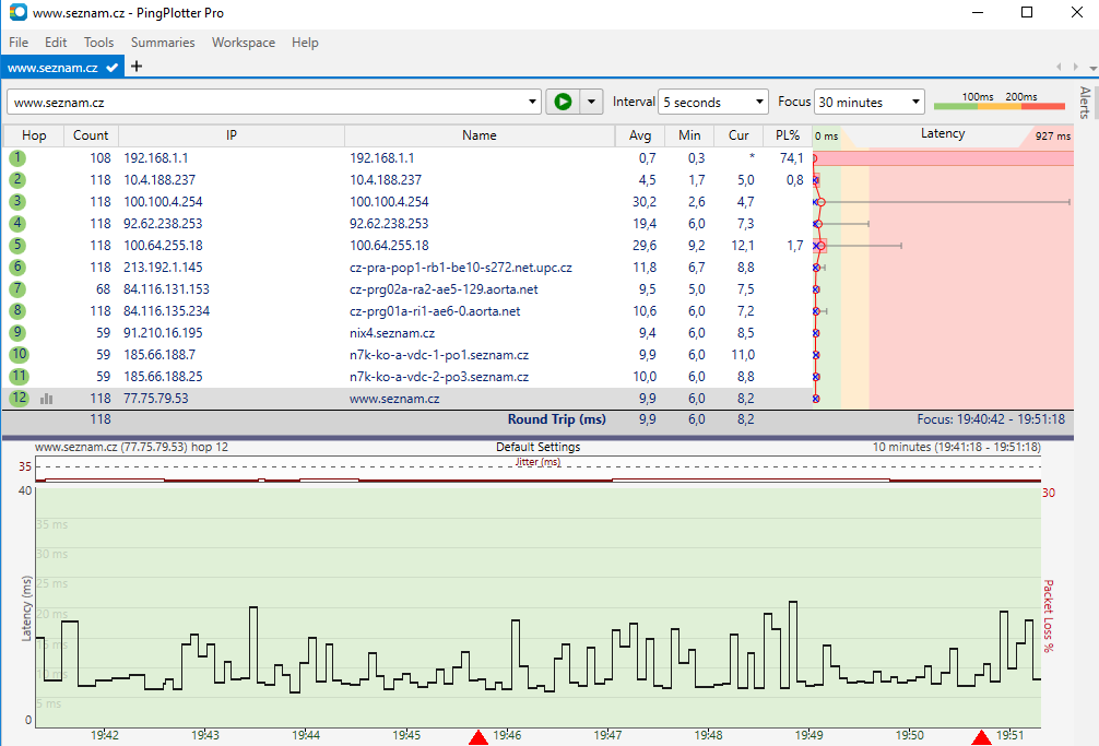 A dej sem screen z pingplotter trvající min. 15 minut, ať tam ty výpadky jsou vidět.