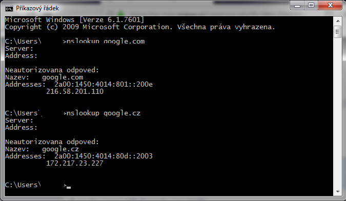 Jak můžeš vidět v příloze, překlad DNS na IP není stejný ani u nás.