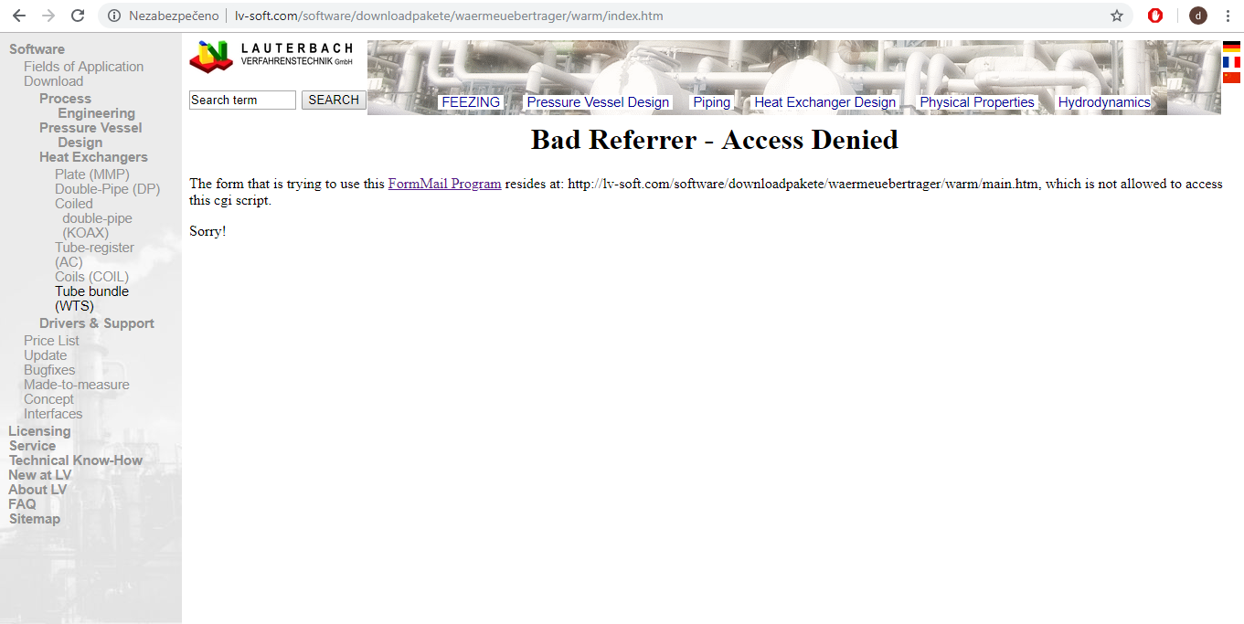 Zdravím, rád bych z těchto oficiálních stránek stáhl zkušební verzi programu Shell and Tube Heat Exchangers, ale pokaždé, když zadám email a jméno a dám download, hodí mi to chybu .. viz obrázek. Vůbec nevím co to má znamenat a jak to mám z tama stáhnout. Poradíte mi někdo?