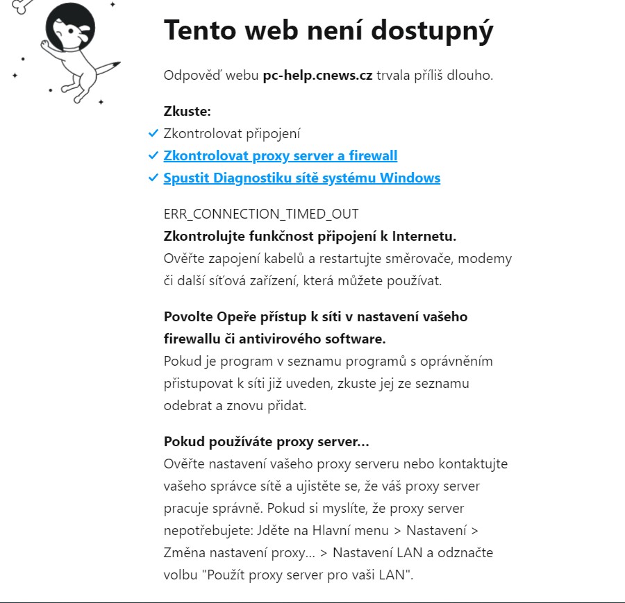 Problémy s internetovými stránkami, internetovým prohlížečem atpod.