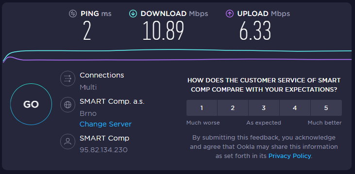 Rychlost internetu dle smlouvy: 80 Mbit / 20 Mbit
