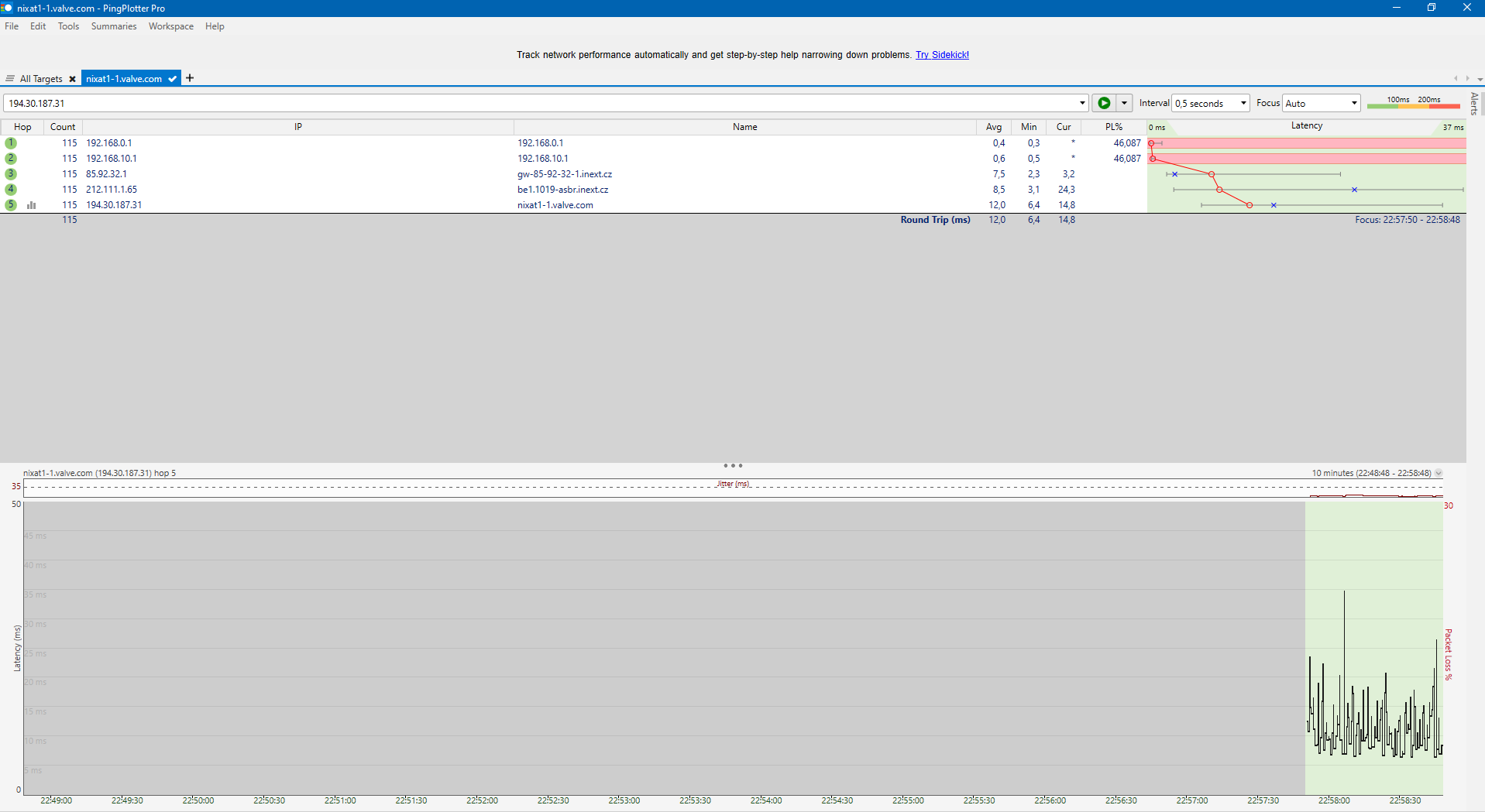 Tak zatím jsem tam hodil to DNS od googlu, pak zkusím dohledat případně zavolat poskytovateli o jeho DNS. Takže teď mám zkusit Pingplotter?