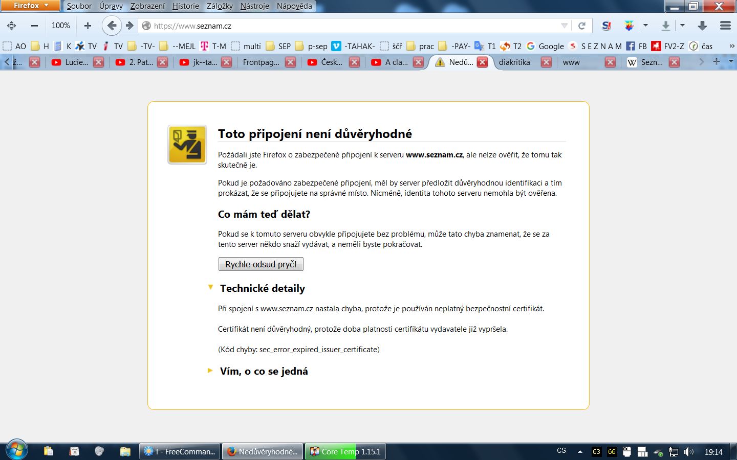 Ve Firefoxu píše hlášku " toto připojení není důvěryhodné" - viz příloha