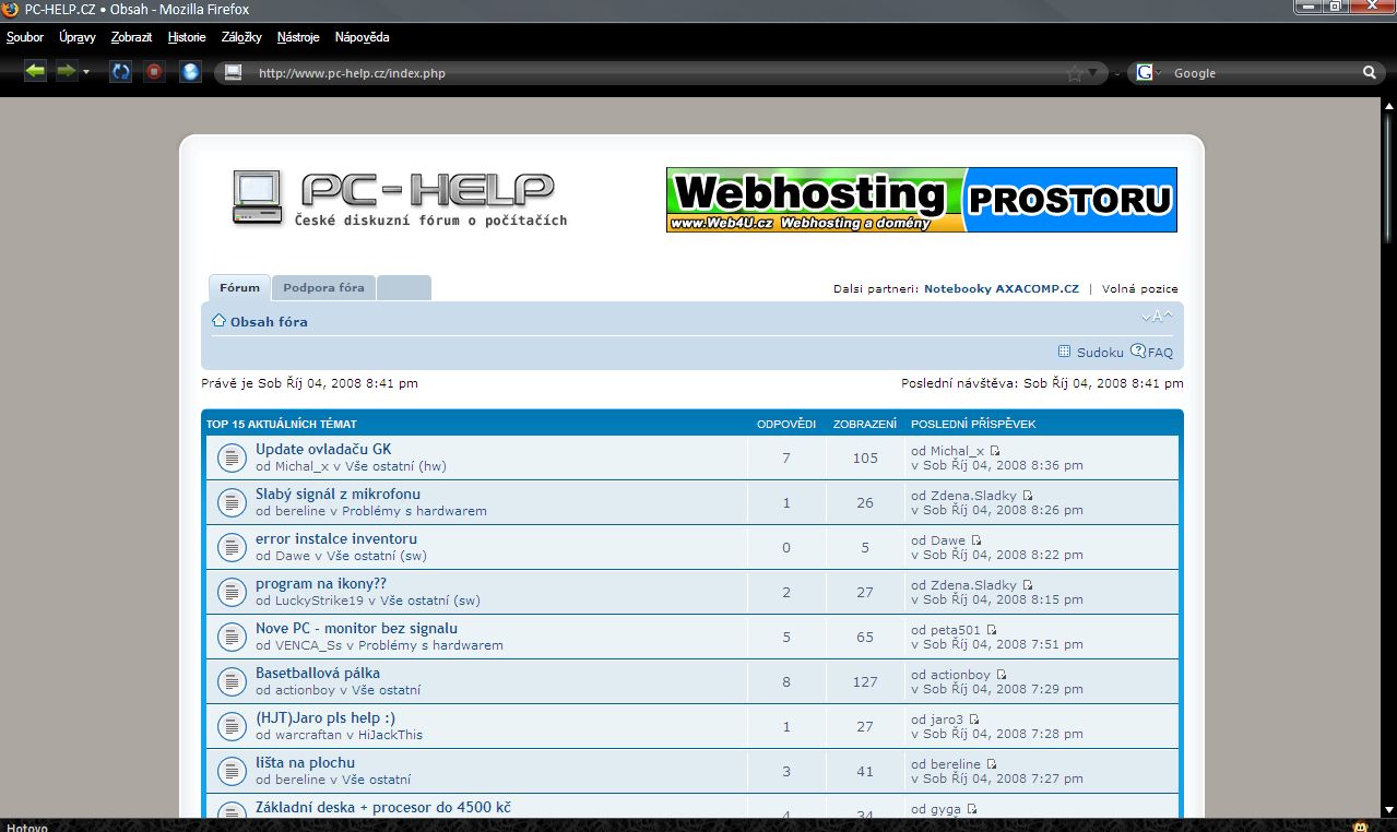 Problém s Firefoxem 3 a PC-Helpem Vyřešeno