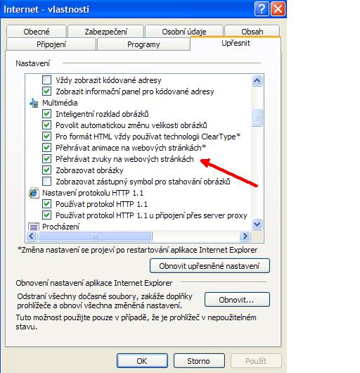 Máš ve vlastnostch internetu nastaveno Přehrávat zvuky na webových stránkách?