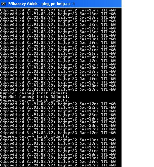 Tak jsem zkusil ping pc-help.cz -t a vypadá to následovně, ale kde to vázne nezjistím. :-(