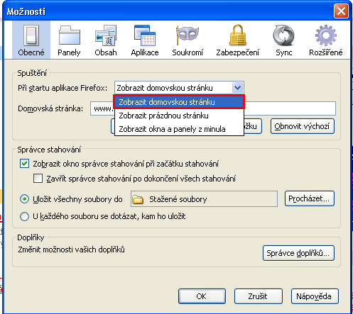 mám firefox 4 ,nastavenu domovskú stránku/google.sk/,ale pri otvoreni prehliadača sa vždy otvorí posledna navštívena stránka.keď kliknem na domovsku otvorí spomínaný google sk.vedel by mi niekto poradiť aby sa otvarala pri spudteni domovska stránka?