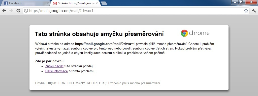 Problém s Gmailem - "stránka obsahuje smyčku přesměrování"