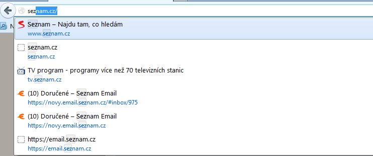 Při psaní do adresního řádku ti prohlížeč nabízí slova, která už jsi někdy v minulosti použil. To přitom jsou šedým podkladem v této nabídce zvýrazněna písmena, která jsi už vložil.