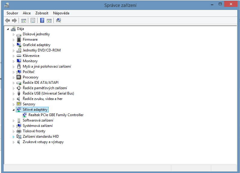 A vidím to již z obrázku tak mi ještě najeď do Ovládací panely -> Hardware a Zvuk ->Správce zařízení a rozklikni mi potom Síťové adaptéry. Adaptér se vůbec nezobrazuje což je divné