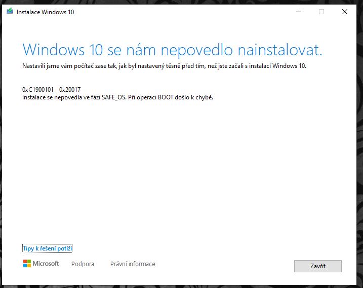 Máš zakázat nebo odinstalovat všechny antiviry třetích stran a odpojit všechny periferie kromě klávesnice a myši.