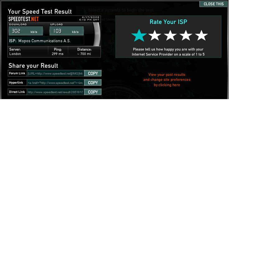 To George níže se pdívej na výsledek mého Speedtestu - bída a utrpení, navíc mne ten provider nějak šidí, musím to zítra nějak řešit.
