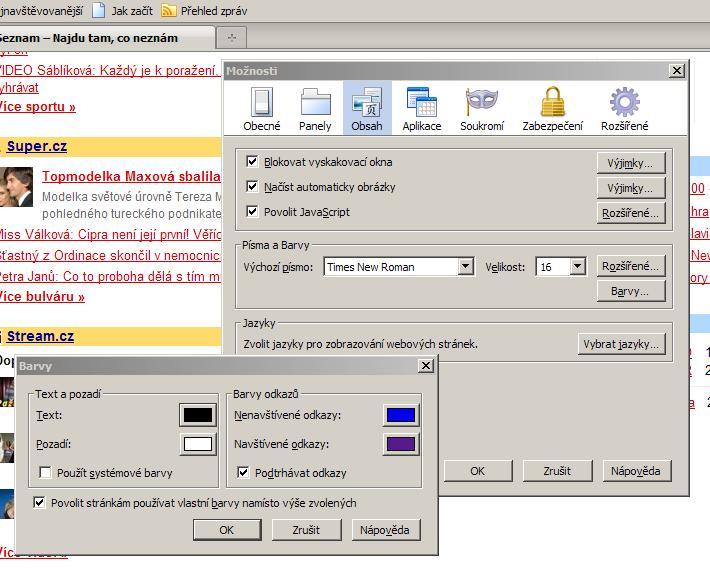 To je nepravděpodobný, že by to bylo v nastavení prohlížečů... můžeš sem ze zvědavosti hodit screen?