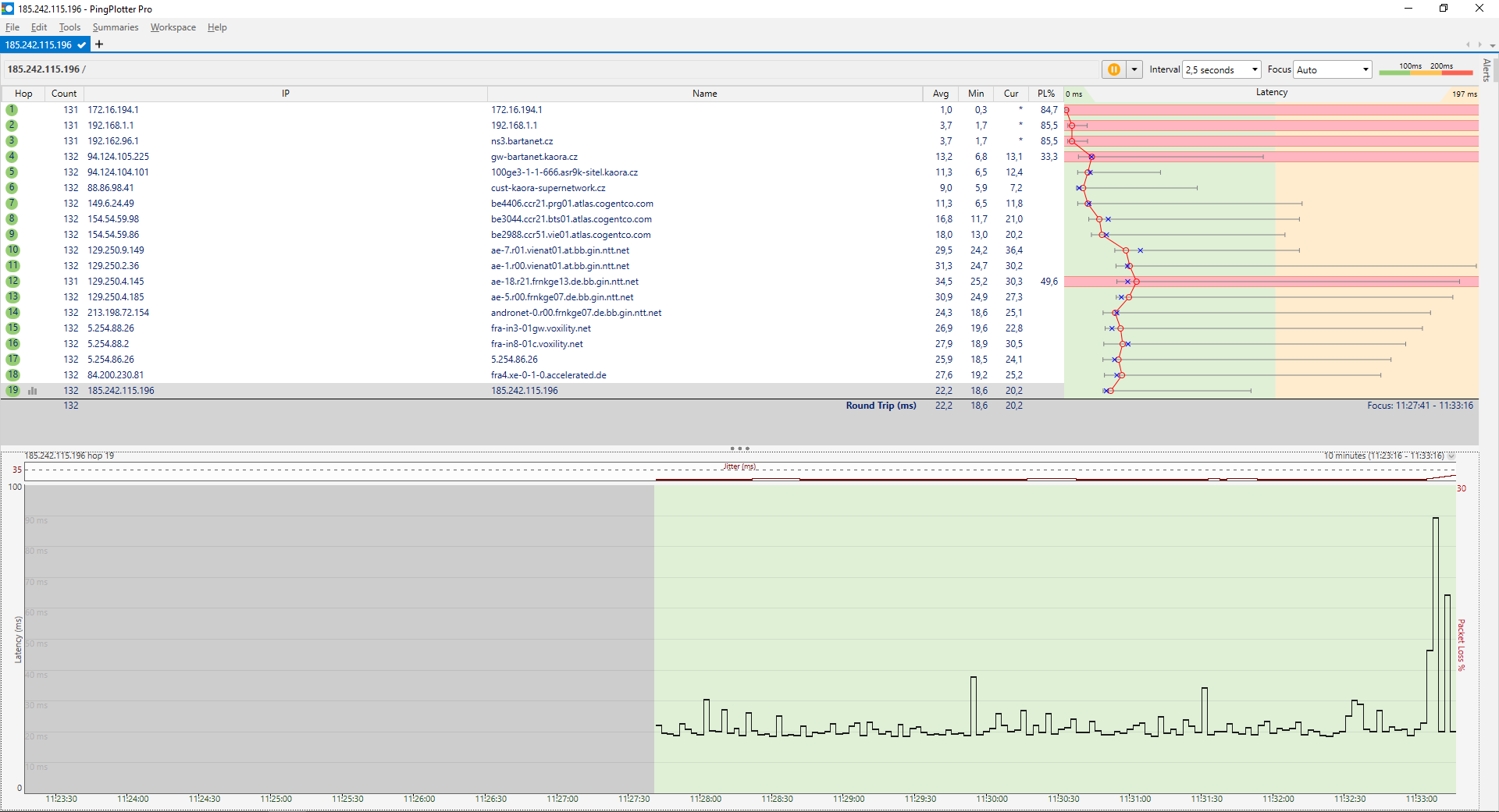To bohužel nemám, za 10 let jsem nikdy problém s pingem neměl, vždy jsem se do 15 vešel pokud zrovna neodešel například router, ale to stačilo vyměnit a vše fungovalo zas jak má. I sám poskytovatel tvrdí, že ping co mám je špatně, ale nedokáže mi poradit dál, jelikož všechno jsme vyzkoušeli co ho napadlo.